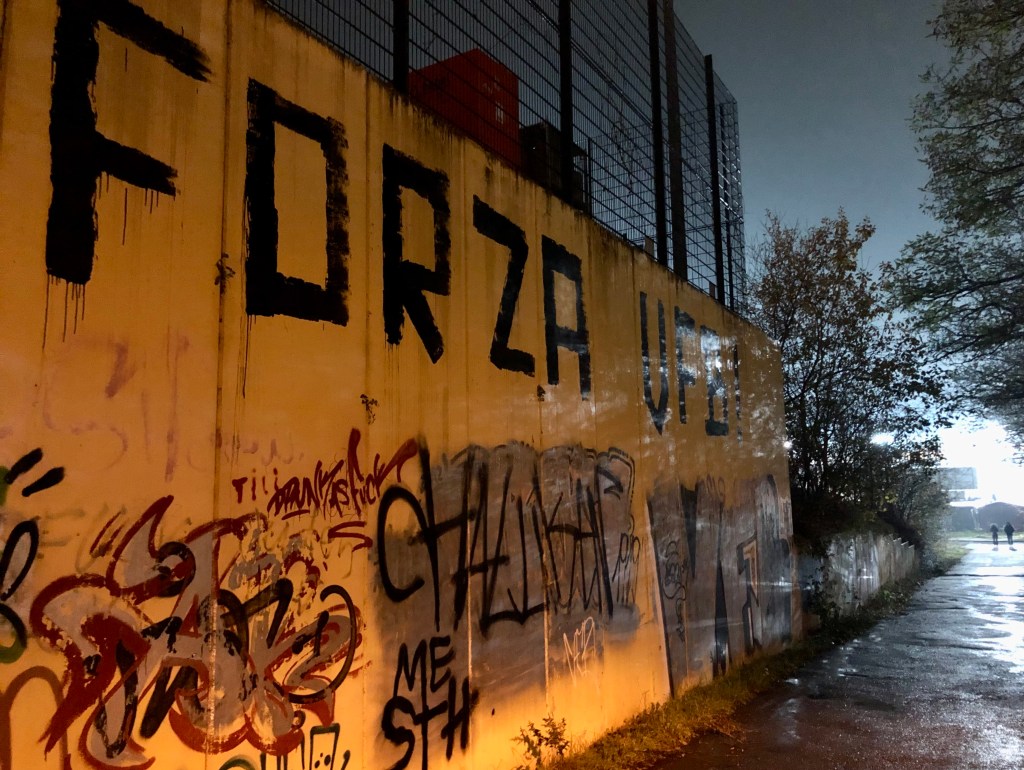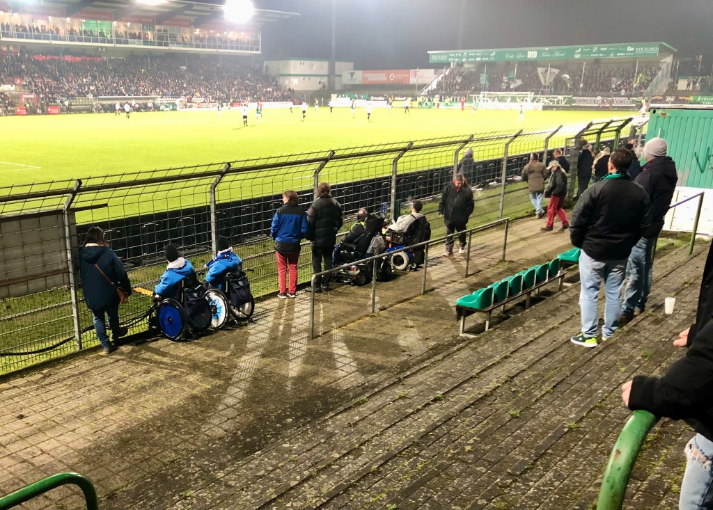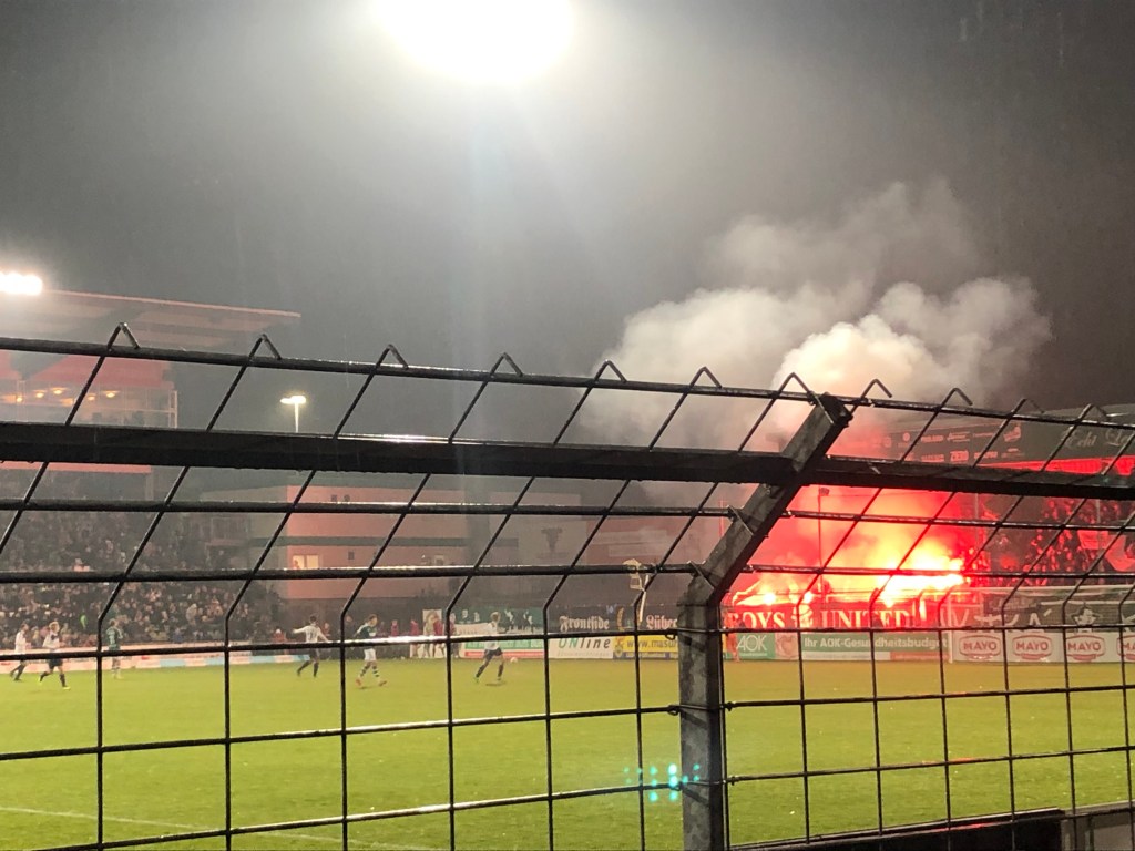 Während die Fußball-Weltmeisterschaft in Katar nun also absurderweise tatsächlich wie geplant stattfindet, führt mich meine Suche nach dem wahren Spiel heute in die Marzipan- und Hansestadt Lübeck zum Regionalligatopspiel zwischen dem auf der Lohmühle beheimateten VfB und der Rautenreserve. 7505 Zuschauer sorgen für einen Zuschauerrekord in der nördlichsten und wohl tristesten aller Regionalligen, der die Lübecker in diesem Jahr entfliehen wollen (und vermutlich auch werden). Zur Rekordzahl tragen auch bestimmt 1000-1500 HSV-Fans bei, die es sich im Gästebereich sowie „auf der alten Holze“ gemütlich machen. Auf dem renovierungsbedürftigen Ding habe auch ich heute meinen Platz, den ich nach einem Zwischenstopp am Wurststand pünktlich zum Anpfiff einnehme. Auf dem Weg dorthin bahne ich mir meinen Weg durch eine Masse von – sorry! – Vollidioten. Dass es tatsächlich noch Menschen – auch Nazis – gibt, die in Thor-Steinar-Klamotten rumlaufen… Was für Opfer!
