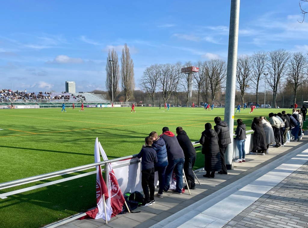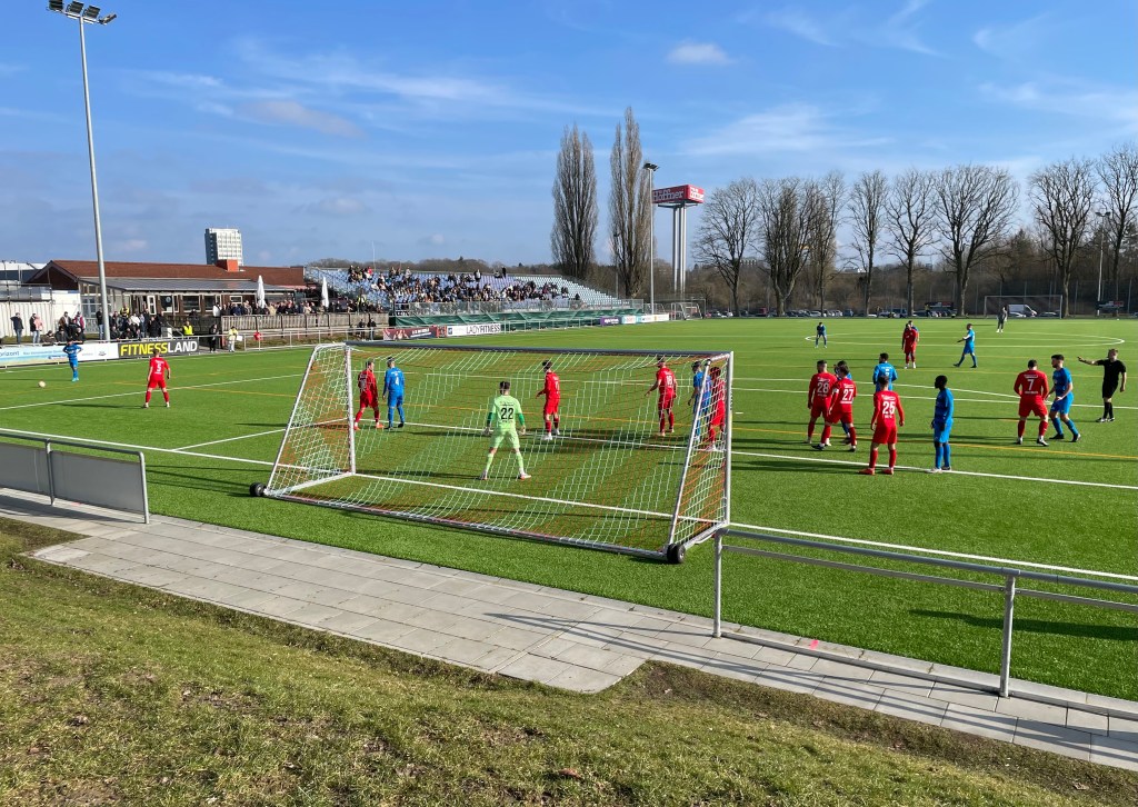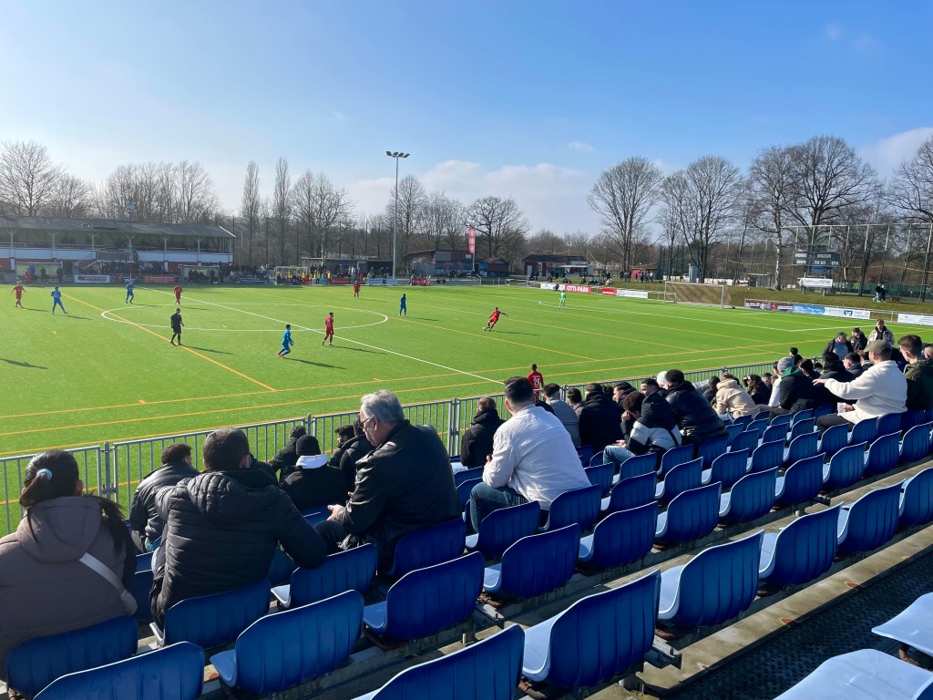 Auch wenn das Frühlingswetter zu einer Landpartie einlädt und so manch interessanter Kick aus der Ferne meine Aufmerksamkeit hervorzurufen in der Lage wäre, so bleibe ich heute doch in der Landeshauptstadt. Und wo das schon mal so ist, kann ich mir doch auch das Kieler Oberligaderby im Kilia-Stadion geben, wo heute der FC „Wellyou“ Kilia Kiel die Gaardener Jungs von Inter Türkspor fordert. Fun fact: Bevor der Chef der genannten Fitnesskette beim Traditionsverein auf dem Westufer einstieg, war Türkspor der unterstütze Verein des Mäzens. Dass es dem Club gelang, sich neu aufzustellen und trotzdem in der Oberliga zu etablieren, ist aller Ehren wert und liegt auch an der breiten Unterstützung, die der Club insbesondere innerhalb der türkischstämmigen Community genießt. Auch beim heutigen Kick hält es die Mehrzahl der über 400 Zuschauer mit den Gästen, die gleichwohl als klarer Außenseiter ins Spiel gehen. Der FC Kilia hingegen wird von vier (!) lautstarken Fans unterstützt, die jeder eine Fahne schwenken und zudem noch ein Megaphon am Start haben. Das Spiel beginn derweil eher ein wenig träge, der Favorit, der jüngst seinen Willen zum Ausdruck brachte, auch den nächsten Aufstieg vollenden und im Anschluss die Regionalliga aufmischen zu wollen, ist überlegen, aber selten zwingend. Mit dem ersten vernünftigen Konter gelingt den Gästen dann gar urplötzlich die Führung, die dann aber kurze Zeit später wieder hergegeben wird. Die plumpe Zweikampfführung eines Abwehrspielers hat einen Elfmeter hat den Ausgleichstreffer zur Folge. War dieser unstrittig, so ist ein zweiter Elfmeter, den die Kilianer kurz vor der Pause zugesprochen bekommen, eine Fehlentscheidung. Genutzt wird diese Chance natürlich schon, so dass es zur Halbzeit 2:1 steht.