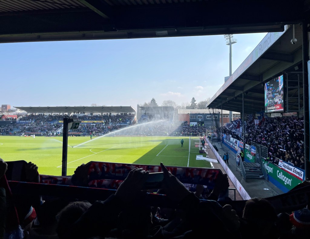Der Spielverlauf ist schnell erzählt. Nach einer eher ausgeglichenen ersten Halbzeit gibt Holstein für ca. 15 Minuten Vollgas, geht verdient in Führung und muss sich dann in der Schlussphase nun sehr offensivfreudigen Karlsruhern erwehren. Das 1:0 wird am Ende auch mit ein wenig Glück gehalten, so dass drei weitere Punkte auf der Habenseite verbucht werden.