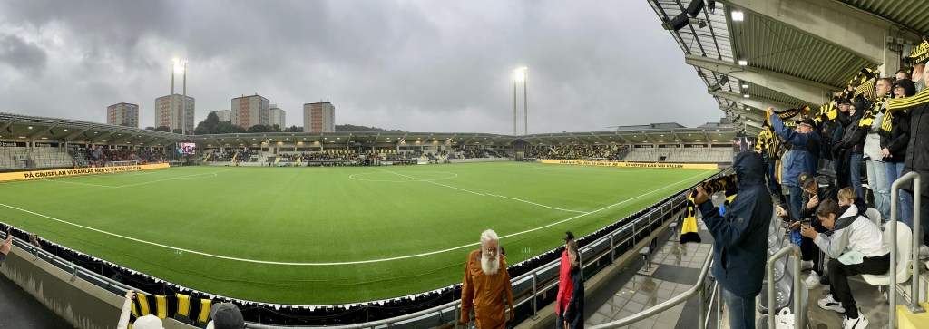 Heute jedenfalls zocken die Heidenheimer in der heimeligen Göteborger Bravida Arena. Ca. 300, 400 Fans begleiten sie und bemühen sich um durchgängigen Support. Die kleine Szene der Heimmannschaft ist nur unwesentlich besser bestückt, so dass das Spiel tifomäßig keine Offenbarung ist. Solide ist der Säcken-Support. Nicht mehr, nicht weniger. Die Gegentribüne, auf der wir heute unsere Plätze haben, ist derweil gut gefüllt. In unserer Nähe sitzen neben etlichen Schweden auch ein paar Heidenheimer Rentner, die sich im Laufe des Spiels bemühen, ihren erheblichen Mangel an Fußballsachverstand lautstark auszuagieren. Gut für sie, dass vermutlich nur wenige sie verstehen. Leider gehören wir dazu.