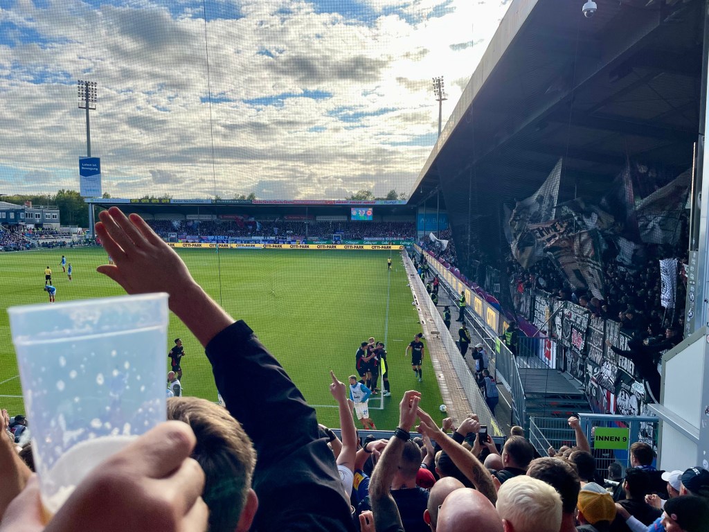 Nach dem Spiel gibts noch ein Bier an der Straßenbahn. Ich glaub, ich komme im April 2025 wieder, wenn St. Pauli zu Gast am Westring ist…