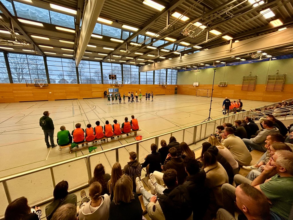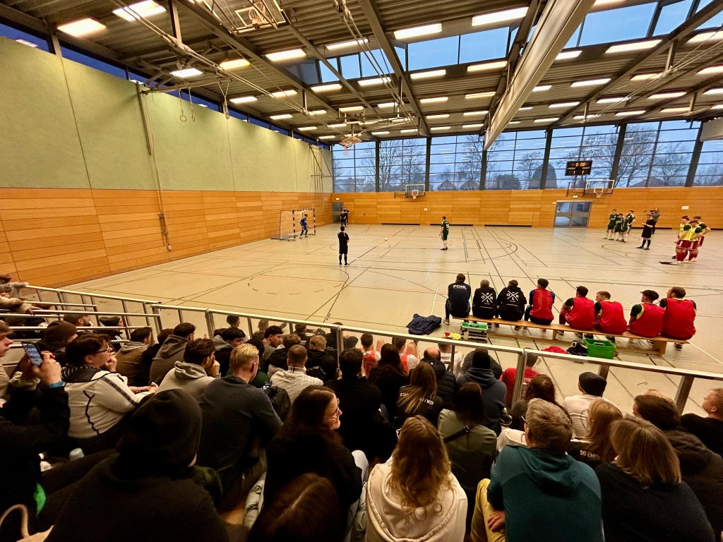 An diesem schneereichen Wochenende führt mich mein Weg nach Ecktown, wo der zweitgrößte Flächenkreis der ehemaligen BRD seinen Hallenfußballkreismeister ausspielt. Tatsächlich komme ich rechtzeitig zu den finalen Spielen der Vorrunde, die sich in rappelvoller Halle zwar nicht unbedingt hochklassig, aber tatsächlich ziemlich spannend gestalten. Mit Toren in den Schlusssekunden und dem ein oder anderen Emotionsausbruch. Barkelsbys Treffer zum vermeintlichen Halbfinaleinzug beispielsweise, die Eckernförder Jubeltrauben nach dem wichtigen Sieg gegen Hohenwestedt… hier ist was los!